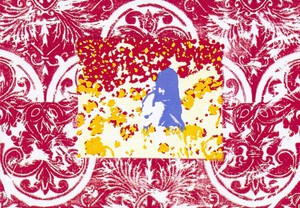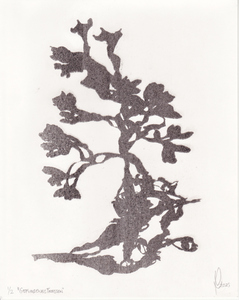 2017Zeefdruk op papier | gedrukt met verf of inkt van planten | o.a. groen:algenpoeder - bruin: juglans, walnoot - roze/rood: meekrap, wortel van de rubia